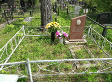 Так выглядело место захоронения на момент окончания работ: оградка заменена, памятник дополнен цветником и вазой, земля укрыта брусчаткой. Помимо этого, мы покрыли секции ограждения серебрянкой.